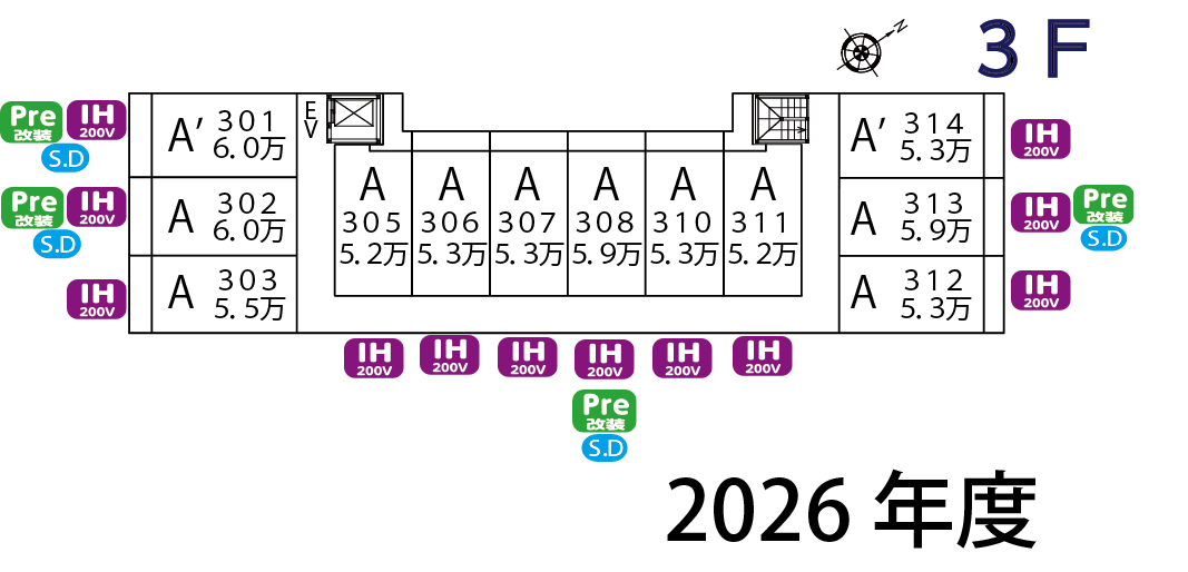 | 賃 料 | 52,000~55,000円(プレミアムタイプ 59,000円~60,000円) | |||