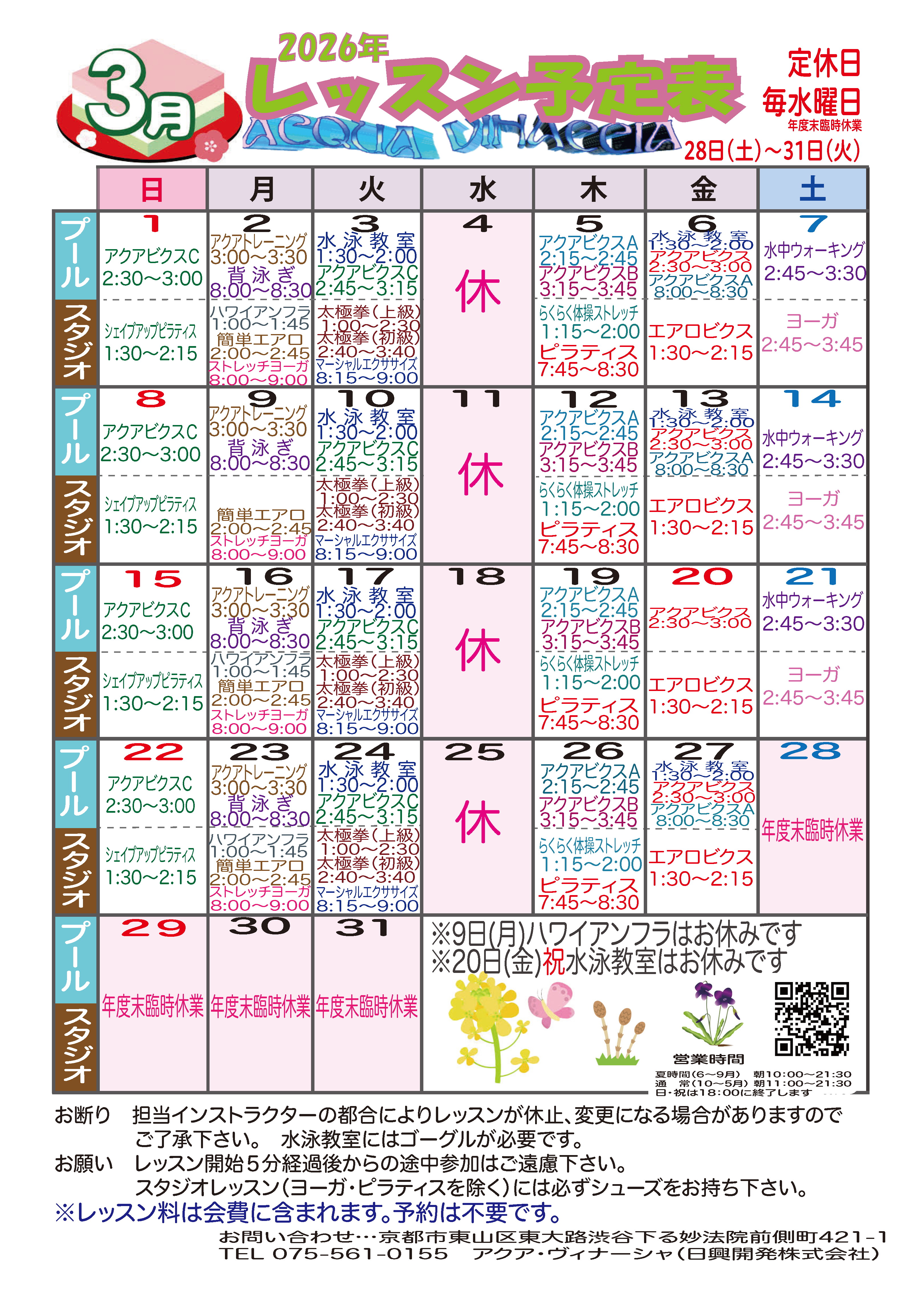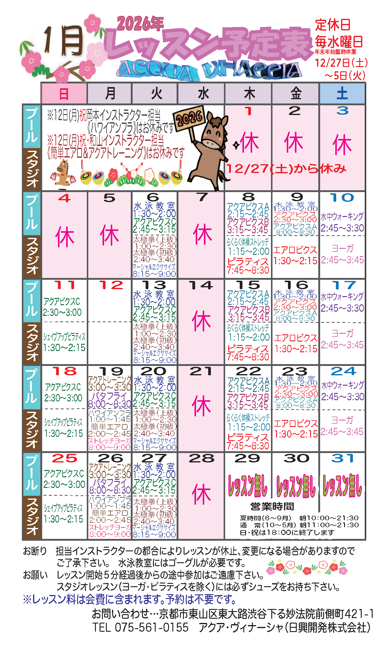 | 事務所定休日、臨時休業日 | |