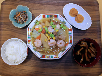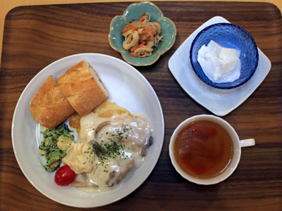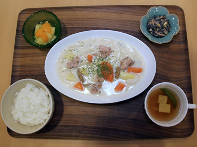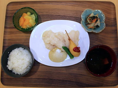 15日(月)白身魚ムニエルクリームソースエビサラダ添え