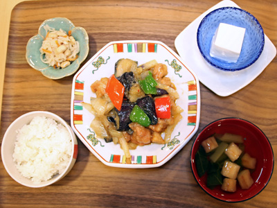 22日(月)鶏と茄子の味噌炒め(1/2日野菜)